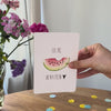 Edler Postkartendruck aus liebevoll gestalteter Originalzeichnung. Egal ob zum Verschicken, Verschenken oder als Deko daheim. Die Rückseite bietet Platz zur Beschriftung. Die Karte ist unbeschichtet und überzeugt durch eine natürliche Haptik. Die Rückseite ist ohne Adressfeld und mit dem One in a Melon Branding.